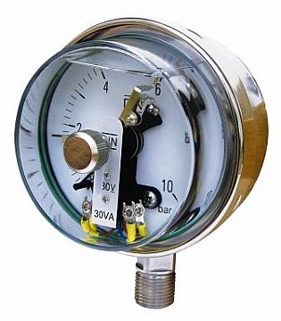 電接點壓力(lì)表由測量係統、指示係統、磁助電接點裝置、外殼、調整裝置和接線盒(插頭座)等組成。一般電接點壓力表是用於測量對銅和銅合金不起(qǐ)腐蝕作用的氣(qì)體、液體介質的正負壓力
