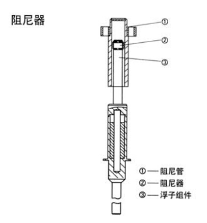 其實,各種流量計在安裝使用時(shí)都強調前後直管(guǎn)段距離,一般是前(qián)10後5,如超聲波流量計,有些流量計甚至前端要達到30倍管(guǎn)徑距離,主要是(shì)為避開(kāi)上遊的調節閥、彎管等擾亂(luàn)介質流態的設備,使流量計能在一個(gè)流態相對穩(wěn)定的測量點進行流量測量,以獲(huò)得準確的流量數據。在使用垂直安裝金屬管浮子流量計時也一(yī)樣,如(rú)果流量計的入口流(liú)量(壓(yā)力)不穩定,尤其(qí)是對於氣(qì)體的測(cè)量,為保證儀表的測量精(jīng)度和延長儀表的使用壽命(mìng),設(shè)計了阻尼器結構,它的結構如圖所示。